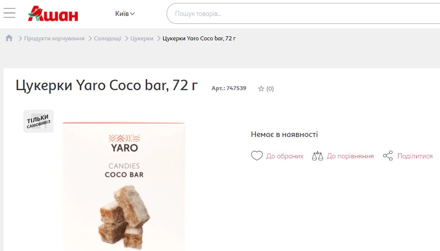 На сайте "Ашана" при выборе товаров ТМ Yaro появляется надпись "недоступно к заказу" либо "нет в наличии".