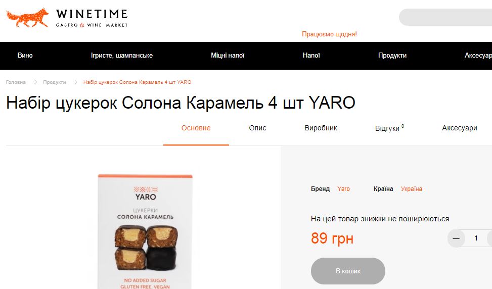 Невозможно заказать сладости и в других онлайн-магазинах, например, в Winetime неактивна кнопка "в корзину".