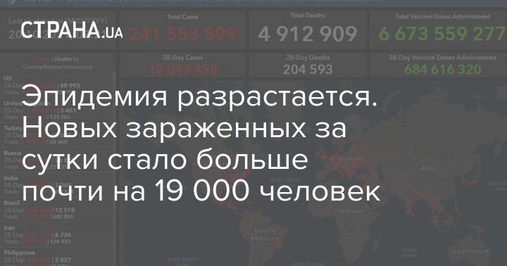 Университет Джона Хопкинса также привел новые данные на утро 20 октября. С начала пандемии на планете уже 241 553 899 человек заразились СOVID-19. Умерли за этот же срок - 4 912 909 человек.