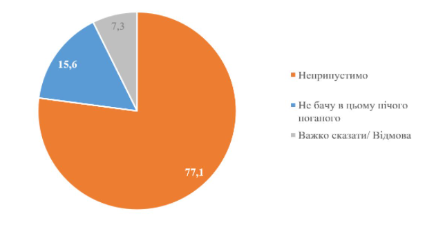 А вот "ничего плохого" в этом не видят 15,6%. Забавно, что эту же риторику воспроизводит президент и его окружение, комментируя скандал. Но, как видим, также думает меньшинство украинцев.