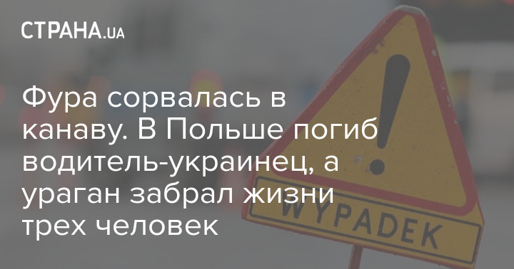 Фура сорвалась в канаву. В Польше погиб водитель-украинец, а ураган забрал жизни трех человек