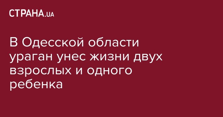 В Одесской области стихия забрала уже три жизни: двое человек погибли из-за рухнувших деревьев, 11-летний ребенок получил смертельный удар током из-за оборванных проводов. Об этом сообщает ГосЧС.