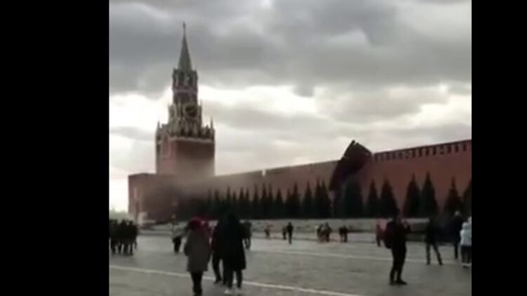 В российской столице поднялся ураган, который порывом ветра снес строительные леса. Леса, в свою очередь, упали и повредили один из зубцов на стене Кремля.
