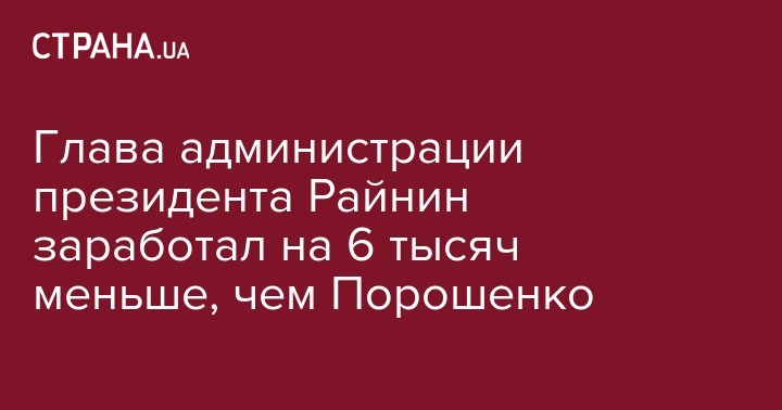 "Размер должностного оклада главы Администрации Президента Украины составляет 18 тысяч гривен. Сумма начисленной заработной платы за сентябрь главы Администрации Президента Украины Райнина составляет 22 568, 18 гривны", - сказано в сообщении.