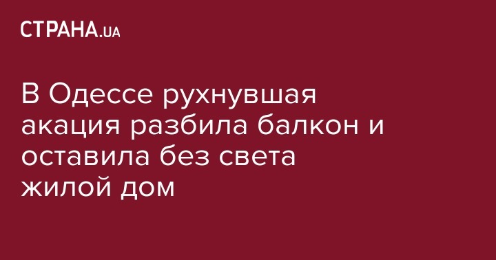 В Одессе рухнувшая акация разбила балкон и оставила без света жилой дом
