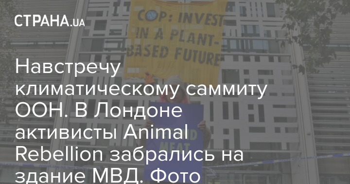 Во вторник, 26 октября, в Лондоне на здании МВД активисты Animal Rebellion развесили баннер с призывом инвестировать в будущее, основанное на растительной продукции. Также они раздавали листовки, в которых рассказывалось о вреде животноводческой промышленности.