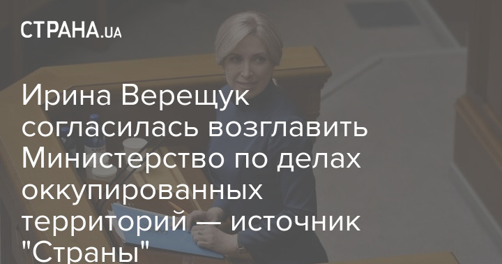 По данным "Страны", нардеп от "Слуги народа" Ирина Верещук согласилась принять предложение занять пост министра по делам оккупированных территорий.