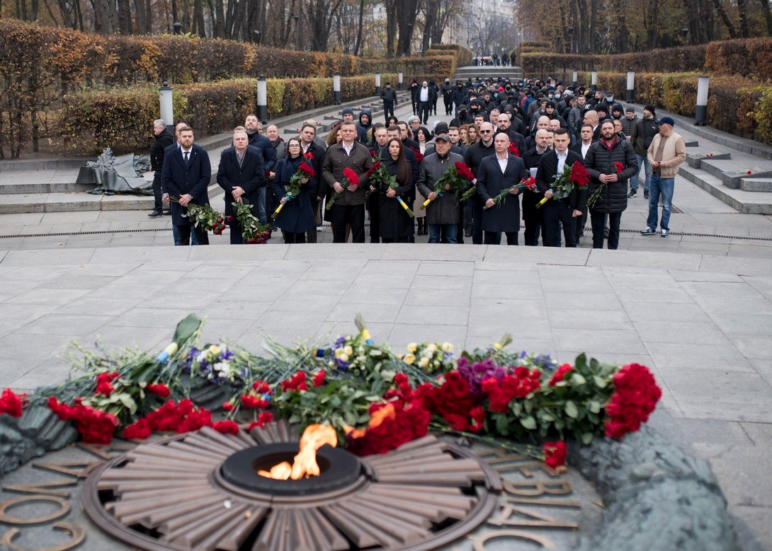 Из парламентских фракций 77-ю годовщину со Дня освобождения Украины отметили депутаты "Оппозиционной платформы - За жизнь". Они пришли к вечному огню на могиле Неизвестного солдата в киевском Парке Славы вместе с ветеранами, чтобы возложить цветы к монументу.