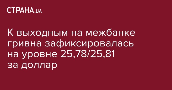 К выходным на межбанке гривна зафиксировалась на уровне 25,78/25,81 за доллар