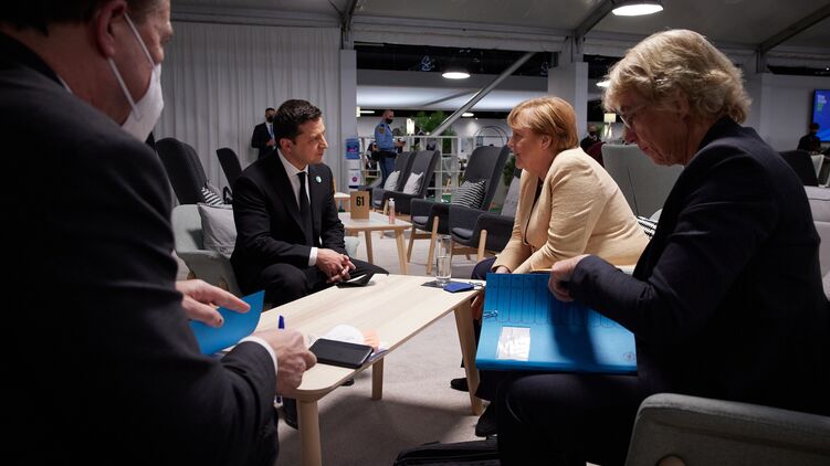 "Во время встречи в Глазго с Ангелой Меркель обсудили текущую ситуацию с безопасностью на Донбассе и ход переговоров для установления мира, энергетический кризис в Европе и пути его преодоления, а также актуальные вопросы отношений Украины и Германии", - написал Зеленский.