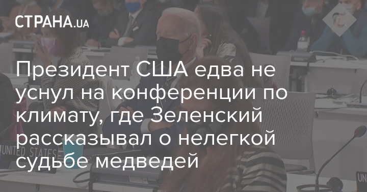 Президент США Джо Байден задремал сидя во время климатического саммита, который проходит в шотландском Глазго и на котором Владимир Зеленский рассказывал о нелегкой судьбе медведей.