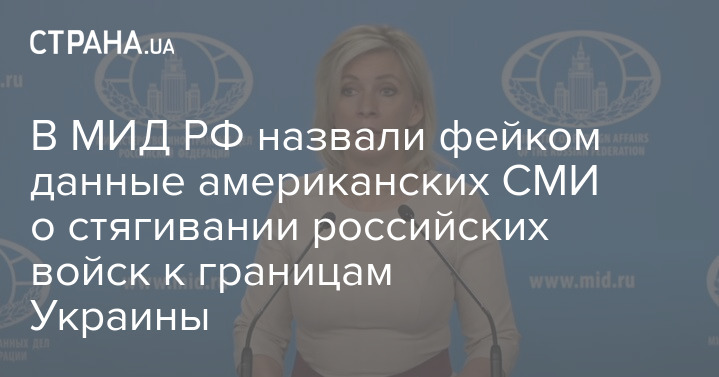 Официальный представитель МИД РФ Мария Захарова назвала фейковой кампанией публикации в СМИ США о том, что Россия стягивает военные силы к границе с Украиной. Об этом она заявила во время брифинга по вопросам внешней политики, передает ТАСС.