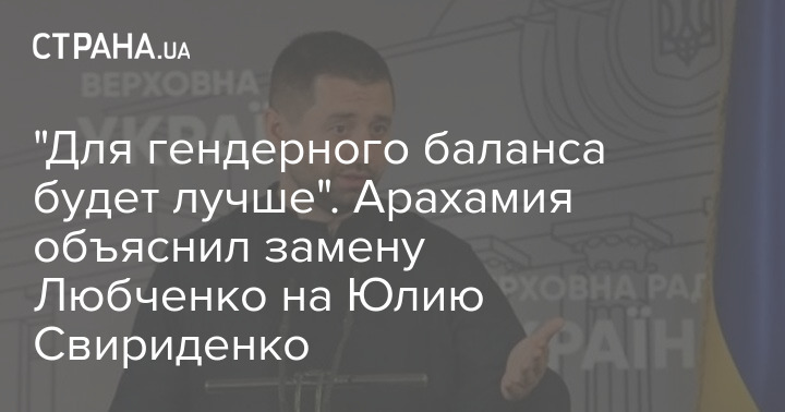 "Любченко – нормальный менеджер. Просто считаем, что вице-премьер женщина для гендерного баланса будет лучше", - сказал Арахамия.