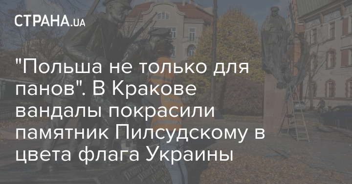 "Польша не только для панов". В Кракове вандалы покрасили памятник Пилсудскому в цвета флага Украины