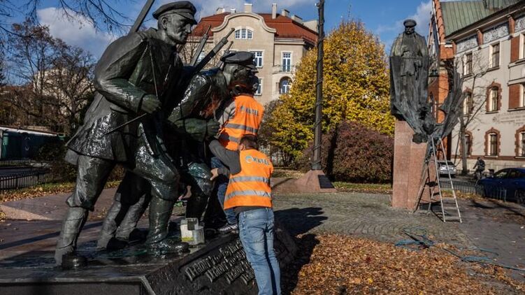 В польском городе Краков неизвестные покрасили памятник польскому деятелю Юзефу Пилсудскому в цвета украинского флага, но в перевернутом виде. Правоохранители устанавливают причастных.