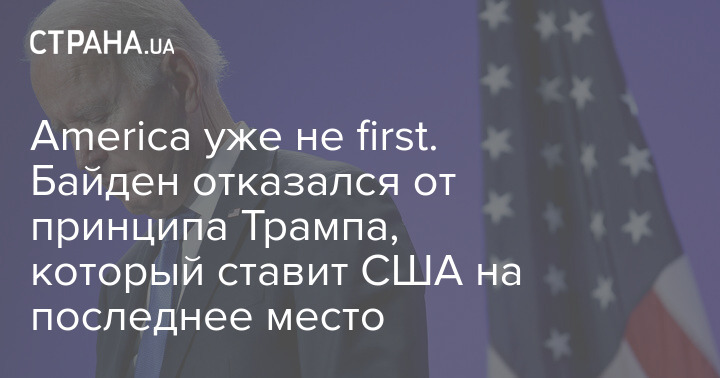 Президент Соединенных Штатов Джо Байден отказался от принципа "Америка на первом месте" (America first), который выбрал экс-лидер США Дональд Трамп.