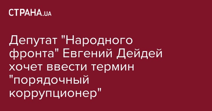 В Верховной раде зарегистрирован законопроект депутата "Народного фронта" Евгения Дейдея, в котором предлагается ввести в Украине термин "порядочный коррупционер". Об этом сообщается на сайте Верховной рады.
