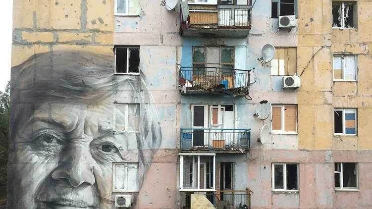 В Авдеевке на многоэтажке австралийский художник создал душещипательный мурал