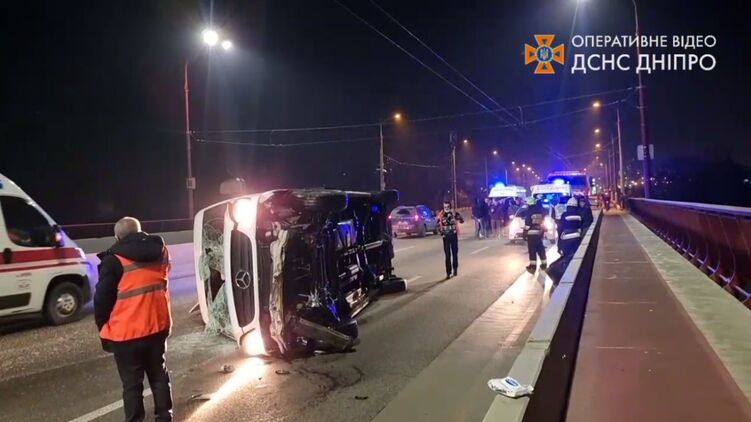 На Новом мосту города Днепр перевернулся микроавтобус с пассажирами. Видео