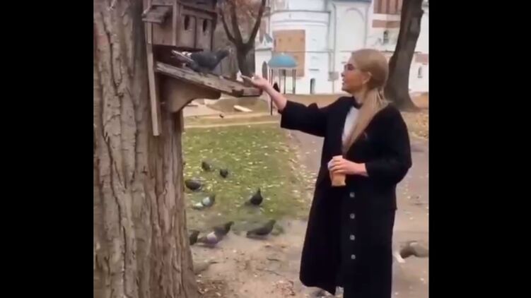 В Чернигове Юлия Тимошенко кормила птиц в окружении фотографов. Видео