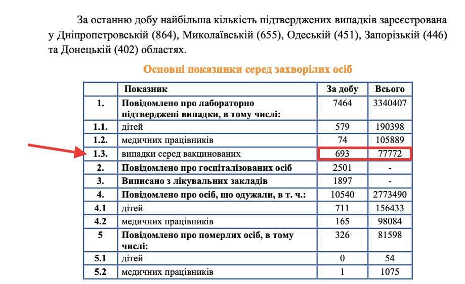 При этом в Украине, по данным Минздрава, 13,67% госпитализированных вчера пациентов с коронавирусом были вакцинированы хотя бы одной дозой.