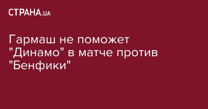 Полузащитник киевского "Динамо" Денис Гармаш, пропустивший из-за травмы недавний матч 11-го тура чемпионата Украины с одесским "Черноморцем" (1:1), не поможет своей команде и в поединке против лиссабонской "Бенфики" в Лиге чемпионов, который состоится 19 октября в Киеве.