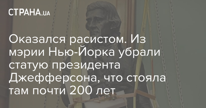 Власти Нью-Йорка убрали из зала городской комиссии, что в здании мэрии, статую третьего президента США Томаса Джефферсона. Она простояла в этом помещении 187 лет.