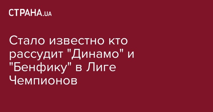 Стало известно кто рассудит "Динамо" и "Бенфику" в Лиге Чемпионов