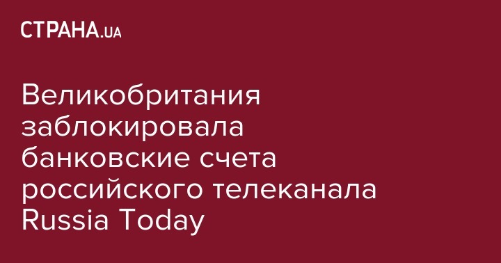 Власти Великобритании заблокировали без права пересмотра все счета российской государственной телевизионной компании RT (Russia Today). Отметим, что телеканал Russia Today имеет собственный офис в Лондоне.