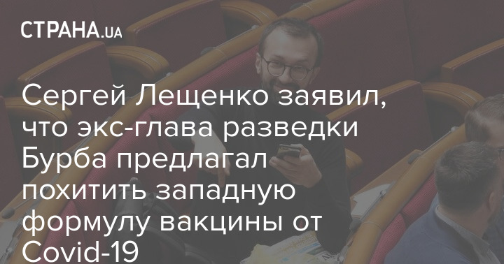 Близкий к Офису президента экс-нардеп Сергей Лещенко заявил, что бывший глава Главного управления разведки Василий Бурба, который недавно рассказал, что приказ перенести операцию по "вагнеровцам" отдал Зеленский, после чего информацию о ней "слил" крот, предлагал украинским властям похитить зарубежную формулу вакцины от коронавируса.
