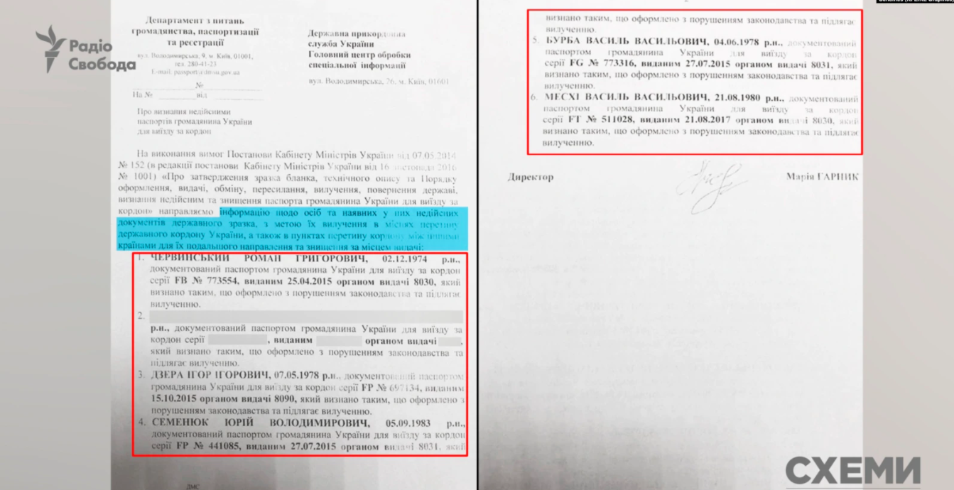 Более того, в ДМС нет информации о том, что паспорта пятерых экс-работников ГУР МО были оформлены с нарушением законодательства.
