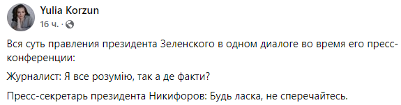 Пресс-секретарь президента Никифоров: Будь ласка, не сперечайтесь", - отмечает журналистка "Страны" Юлия Корзун.