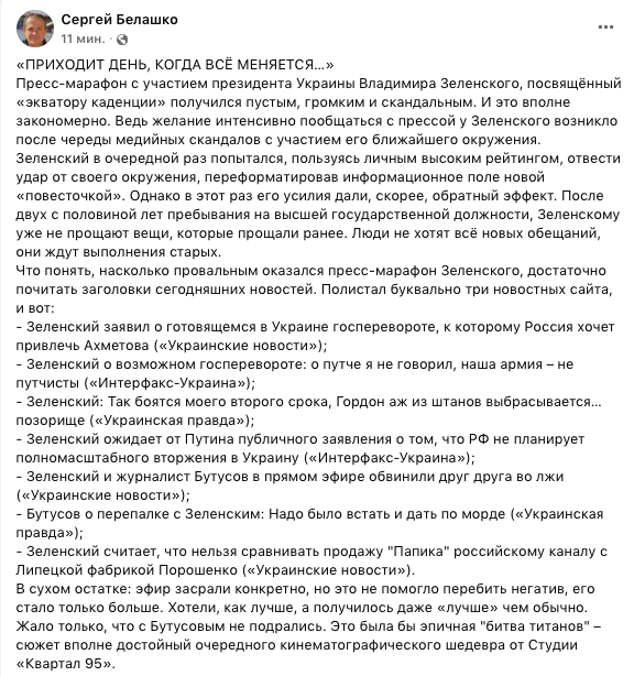 Что понять, насколько провальным оказался пресс-марафон Зеленского, достаточно почитать заголовки сегодняшних новостей.