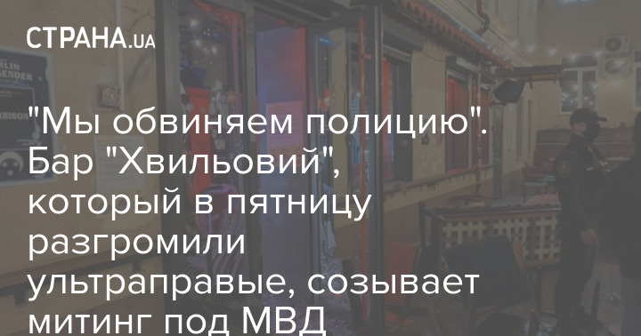 Бар "Хвильовий", который на днях разгромили ультраправые, обвиняет в этом полицию. И завтра, в понедельник , 29 ноября, бар объявил акцию протеста под МВД. Начнётся митинг в 18.30.