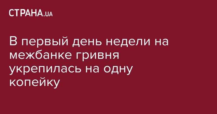В первый день недели на межбанке гривня укрепилась на одну копейку
