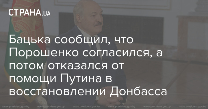 Президент Беларуси Александр Лукашенко вспомнил времена президентства Петра Порошенко и сообщил, Владимир Путин предлагал тому помочь восстановить разрушенный войной Донбасс. Однако украинский президент отказался, так как находился под внешним управлением.