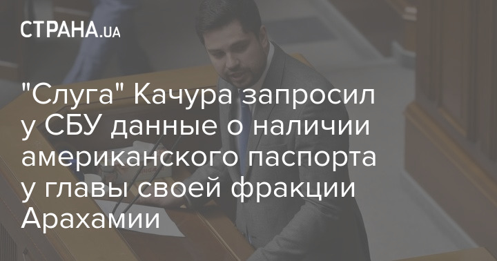 Нардеп от "Слуги народа" Александр Качура обратился в СБУ, Миграционную и Пограничную службы с вопросом о наличии у депутатов Киры Рудик (глава партии "Голос") и Давида Арахамии (глава фракции "Слуги народа") американских паспортов.