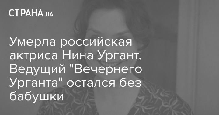 В Санкт-Петербурге умерла бабушка известного российского шоумена Ивана Урганта, советская и российская актриса театра и кино, народная артистка РСФСР Нина Ургант. Женщине было 92 года.