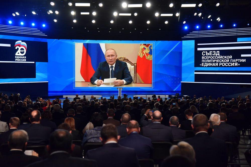 Третий этап съезда "Единой России", который приурочен к 20-летию партии, проходит в московском "Экспоцентре".