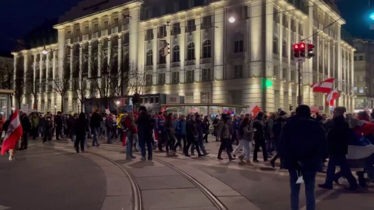В столице Австрии протестуют тысячи людей. Фото: Скриншот из видео