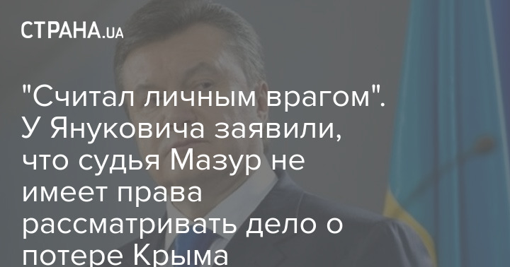 "Считал личным врагом". У Януковича заявили, что судья Мазур не имеет права рассматривать дело о потере Крыма