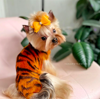 Добавить полоски в образ можно, например, в маникюре. Или же в образ домашнего любимца (не забывайте уточнить у мастера, чтобы краски были специальные и не навредили здоровью вашей собачки).