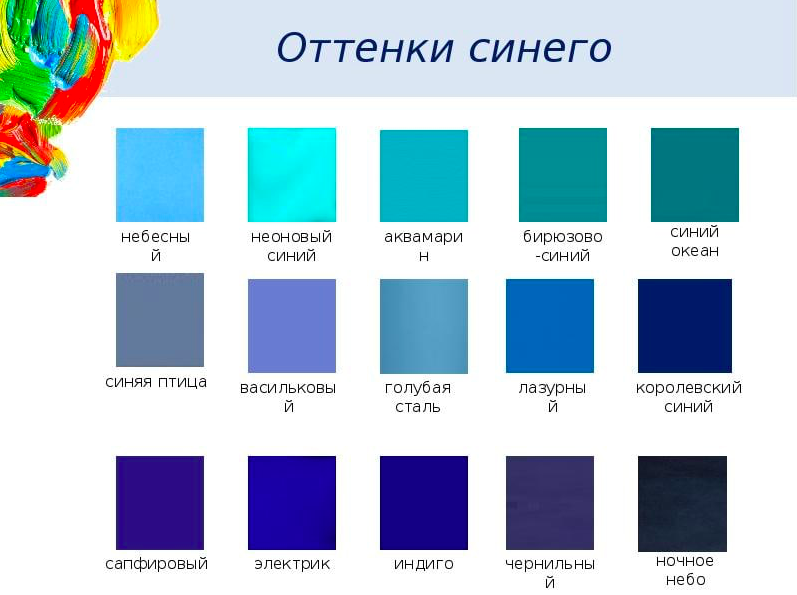 Начнем с цвета. Это, конечно же синий и все его оттенки - начиная с практически белого (цвет морской пены) до черного (цвет ночной водной глади):