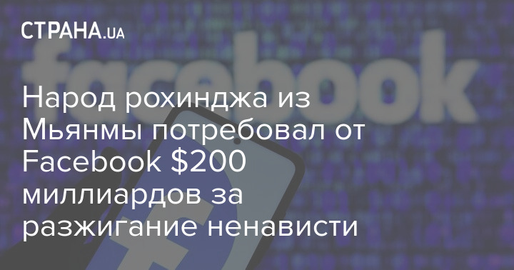 Народ рохинджа из Мьянмы потребовал от Facebook $200 миллиардов за разжигание ненависти
