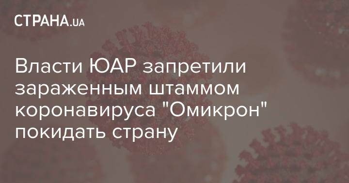 Власти Южно-Африканской Республики (ЮАР) запретили людям, зараженным штаммом коронавируса "Омикрон", который подбирается к Украине, выезжать из страны.