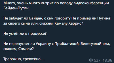 Не забудет ли Байден, с кем говорит? Не пример ли Путина за своего сына или, скажем, Камалу Харрис?