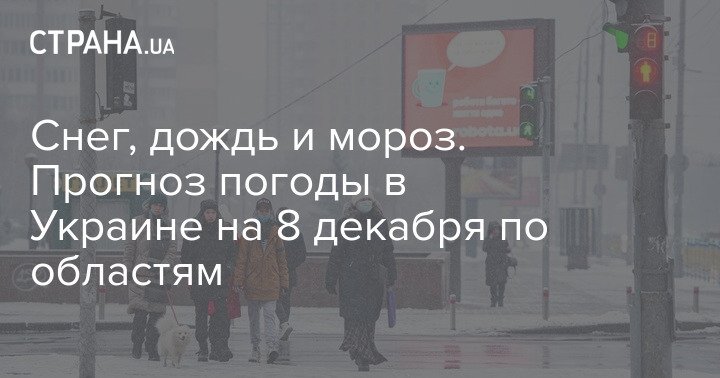 В среду, 7 декабря, почти по всей территории Украины пройдут дожди, местами с мокрым снегом. При этом температура воздуха в разных городах будет значительно отличаться - на юге воздух прогреется до +11, а на западе ожидается мороз.