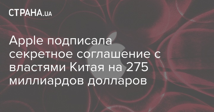 Apple подписала секретное соглашение с властями Китая на 275 миллиардов долларов