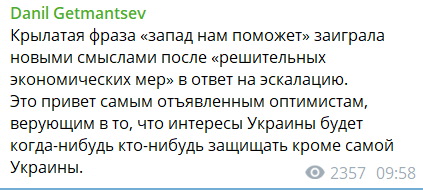 "Крылатая фраза "Запад нам поможет" заиграла новыми смыслами после "решительных экономических мер" в ответ на эскалацию.