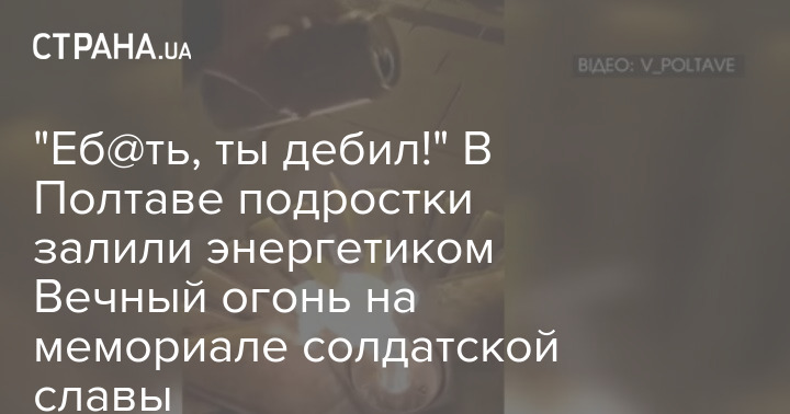 "Еб@ть, ты дебил!" В Полтаве подростки залили энергетиком Вечный огонь на мемориале солдатской славы